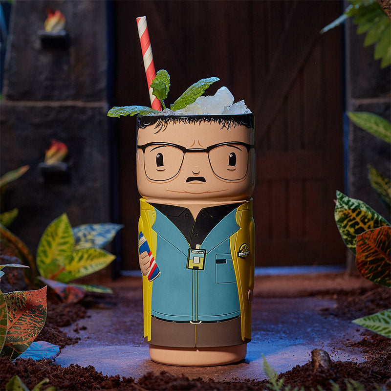 Reusable cosplaying cup featuring Dennis Nedry from Jurassic Park
