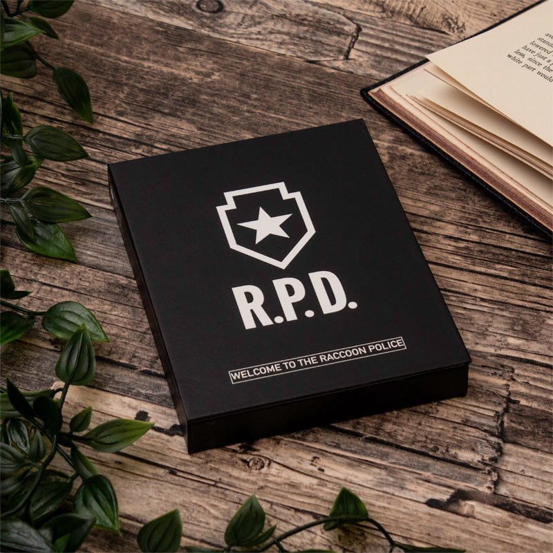 Become a member of the force with this official R.P.D. pin badge, inspired by the Raccoon City Police Department officer’s badge! Displayed in a Raccoon City Police presentation box, this large pin badge is designed for long-time Resident Evil fans and newcomers alike. Whether you keep it in its display box or wear it with pride, your authority as a Resident Evil expert cannot be denied.