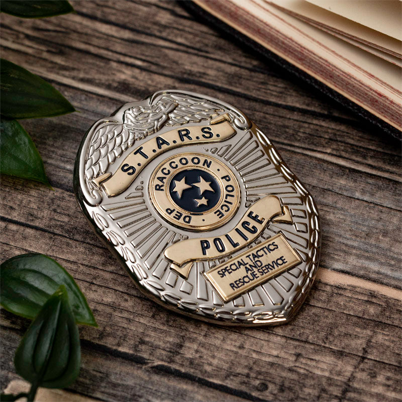 Become a member of the force with this official S.T.A.R.S. pin badge, inspired by The Special Tactics and Rescue Service badge! Displayed in a Raccoon City Police presentation box, this large pin badge is designed for long-time Resident Evil fans and newcomers alike. Whether you keep it housed in its display box or wear it with pride, your authority as a Resident Evil expert cannot be denied.