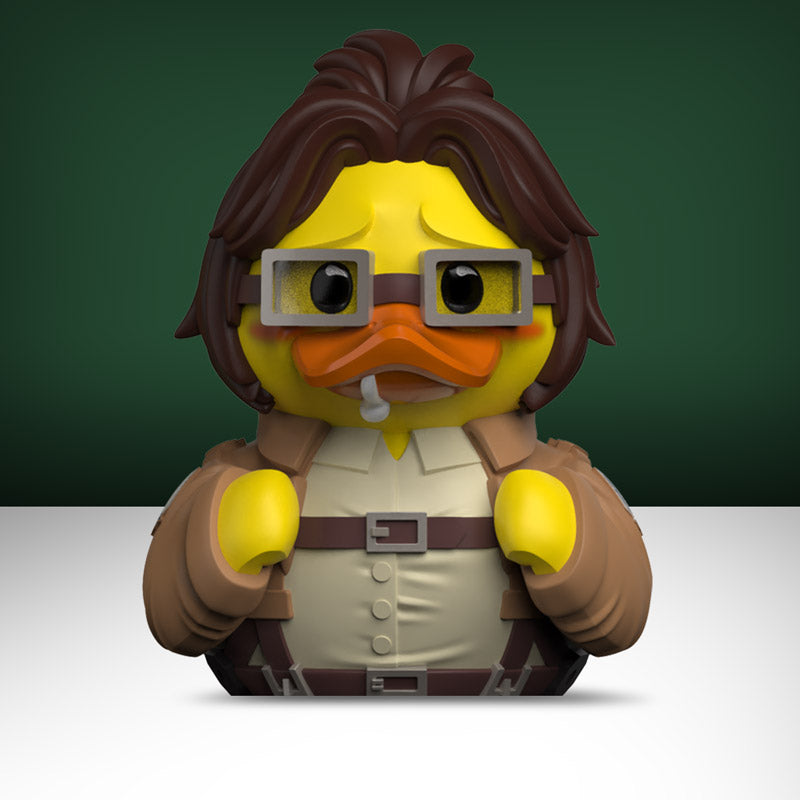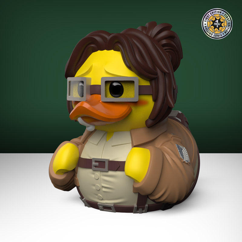 Waddle into the wonderful chaos of Hange Zoë’s world with this First Edition TUBBZ toy! As the Scout Regiment’s eccentric Titan researcher, Hange brings a unique blend of brilliance and enthusiasm - now with added feathers! Clad in their signature uniform and glasses perched perfectly on their beak, this ducky version of Hange captures their curious, energetic spirit.