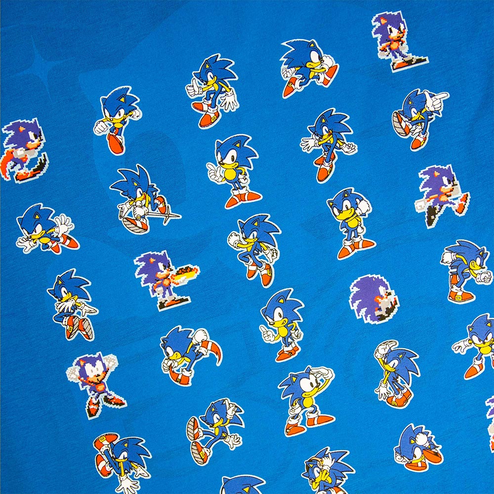 No words are needed to describe the cultural impact that Sonic has brought to the world. Pay homage to 30 years of amazing gaming moments with this incredible blue t-shirt. Made from high quality cotton, it showcases all of the different iterations of Sonic throughout time, from his classic days all the way to his modern look, making it a perfect fan favourite to add to your wardrobe.