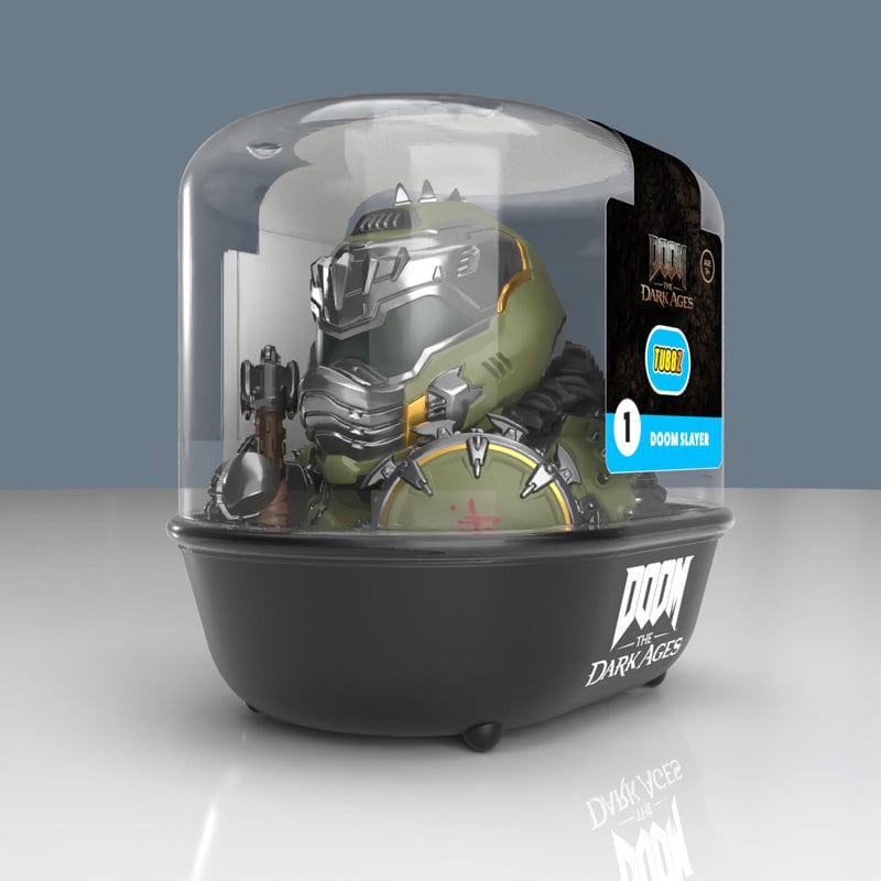 A ‘First Edition’ TUBBZ. Comes in a collector’s bathtub featuring the DOOM: The Dark Ages logo, ‘First Edition’ printed on base of duck, and sticker on packaging