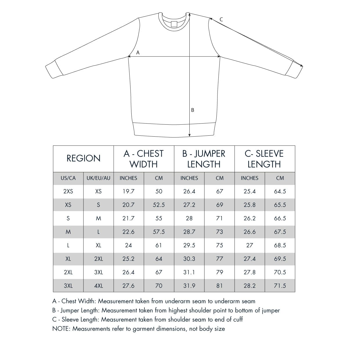 Available in various sizes. UK, EU and AUS - XS, S, M, L, XL, 2XL, 3XL, 4XL and US - 2XS, XS, S, M, L, XL, 2XL, 3XL.